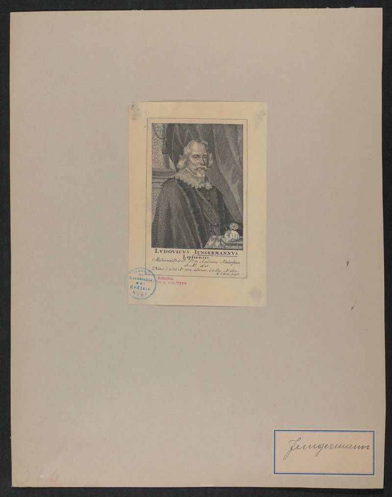 Es handelt sich um einen Kupferstich von Wolfgang Philipp Kilian. Vorderseitig mit einem Stempel des Institutes für Geschichte der Medizin, Wien, und einem Stempel der Sammlung von Adam Politzer versehen.