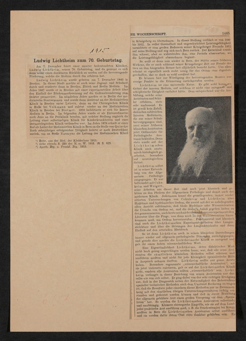 Auszug aus: Deutsche Medizinische Wochenschrift, 1915, S. 1465.