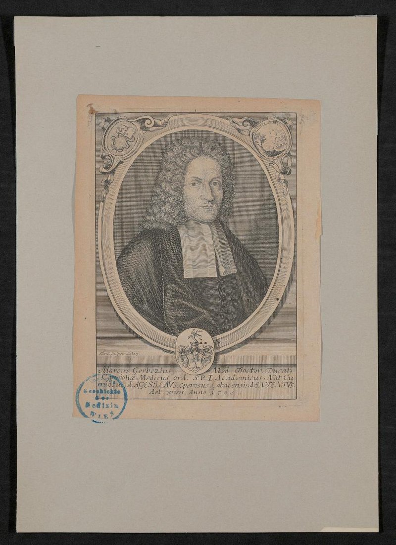 Der Kupferstich wurde von Elias Baeck, Ljubljana, angefertigt. Vorderseitig mit einem Stempel des Institutes für Geschichte der Medizin, Wien, versehen.