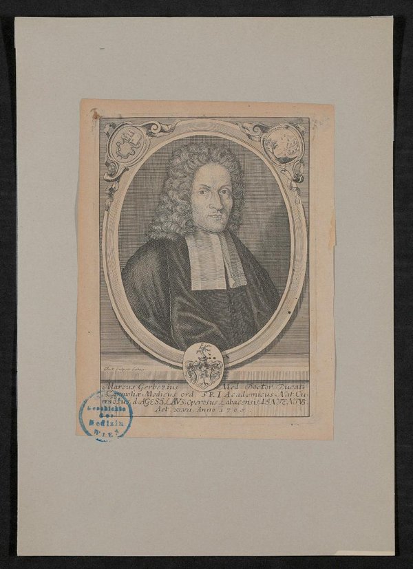 Der Kupferstich wurde von Elias Baeck, Ljubljana, angefertigt. Vorderseitig mit einem Stempel des Institutes für Geschichte der Medizin, Wien, versehen.