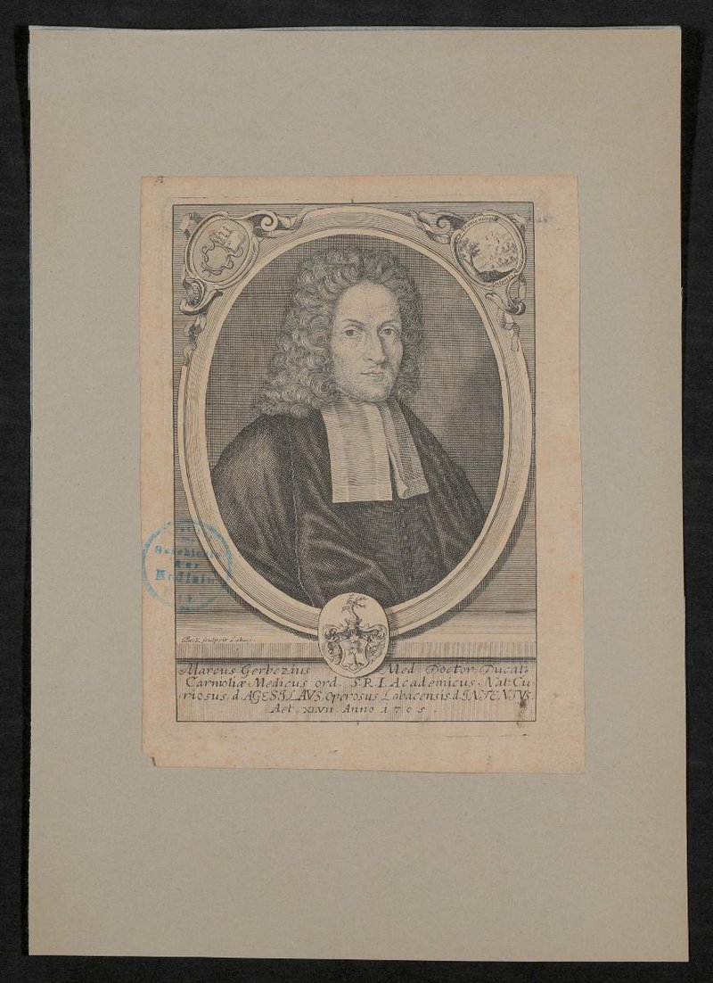 Der Kupferstich wurde von Elias Baeck, Ljubljana, angefertigt. Vorderseitig mit einem Stempel des Institutes für Geschichte der Medizin, Wien, versehen.