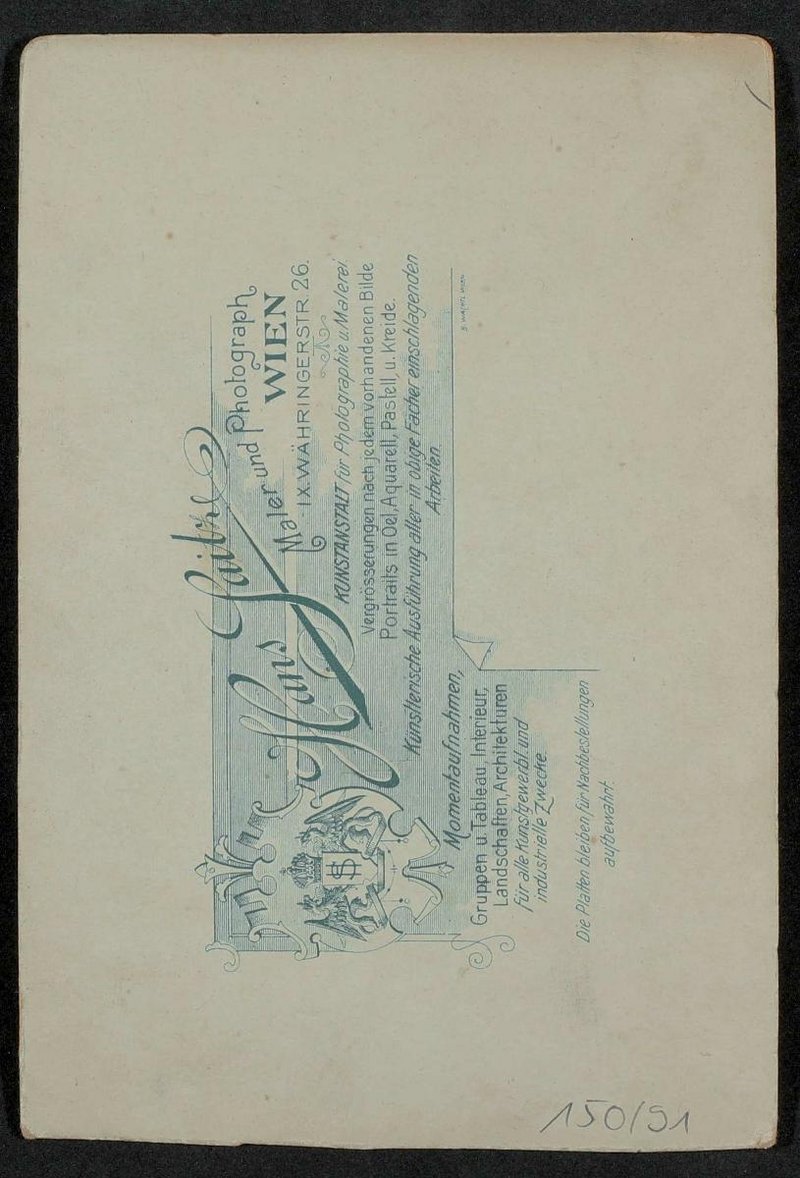 Die Fotografie wurde vom Atelier Hans Saitz, Maler und Photograph, Wien, angefertigt.