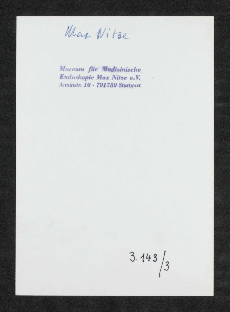 Auf der Rückseite befindet sich ein Stempel des Museum für Medizinische Endoskopie Max Nitze, Stuttgart.
