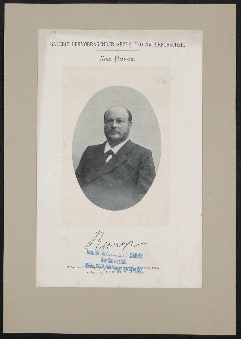 Auszug aus: Galerie hervorragender Ärzte und Naturforscher, in: Beilage zur Münchener medizinischen Wochenschrift, 1909, Bl. 251. Unterhalb des Bildes befindet sich ein Stempel des Institutes für Geschichte der Medizin, Wien.