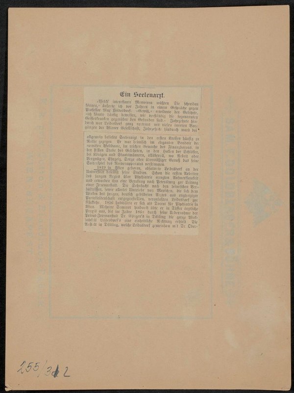 Mit einem Stempel des Instituts für Geschichte der Medizin, Wien, und rückseitigen Hinweisen zur Person Leidesdorfs versehen.