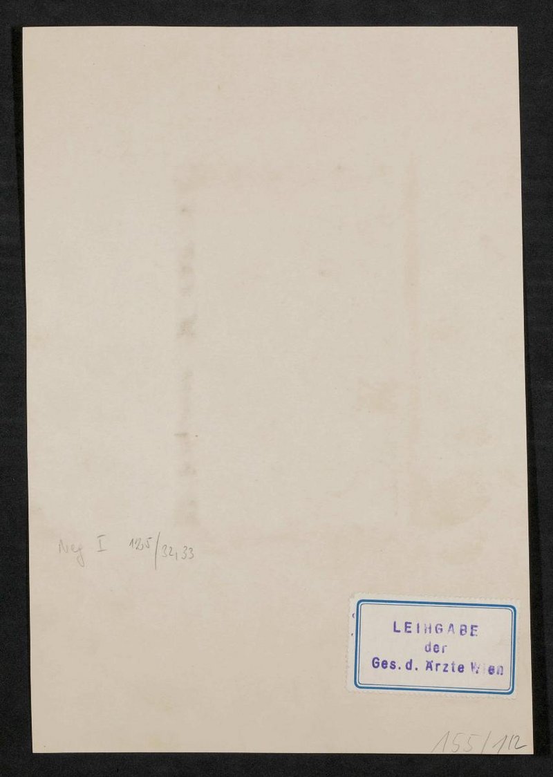 Der Kupferstich wurde von Johann Ernst Mansfeld angefertigt. Rückseitig mit einem Stempel zur Leihgabe durch die Gesellschaft der Ärzte, Wien, versehen. Neg I 125/52, 33 Neg III 131/8