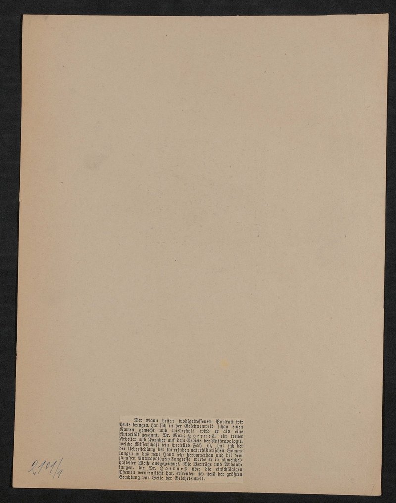 Mit einem Stempel des Instituts für Geschichte der Medizin, Wien, auf der Vorderseite sowie einem Kurzbericht über seine fachlichen Fertigkeiten auf der Rückseite.