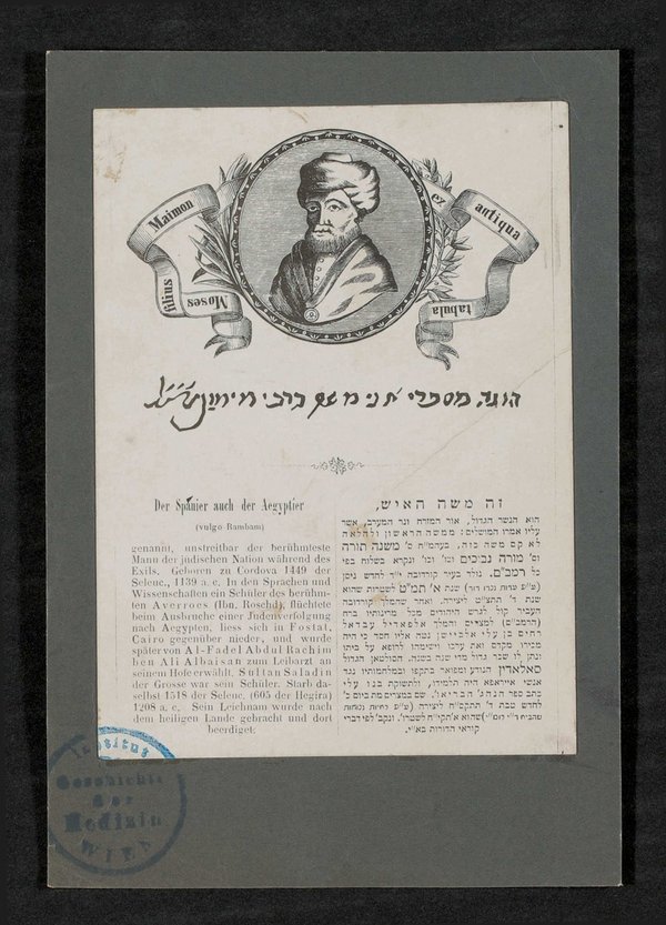 Auf der Vorderseite befindet sich ein Stempel des Instituts für Geschichte der Medizin, Wien.
