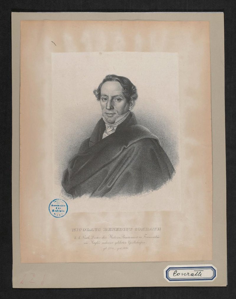 Die Lithografie wurde vermutlich von Anton Machek, Prag, angefertigt. Vorderseitig mit einem Stempel des Institutes für Geschichte der Medizin, Wien, versehen.