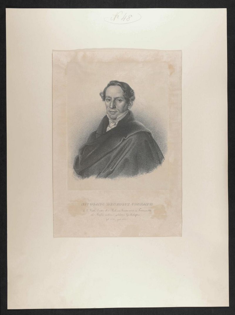 Die Lithografie wurde vermutlich von Anton Machek, Prag, angefertigt. Rückseitig befindet sich ein Stempel der Gesellschaft der Ärzte, Wien.