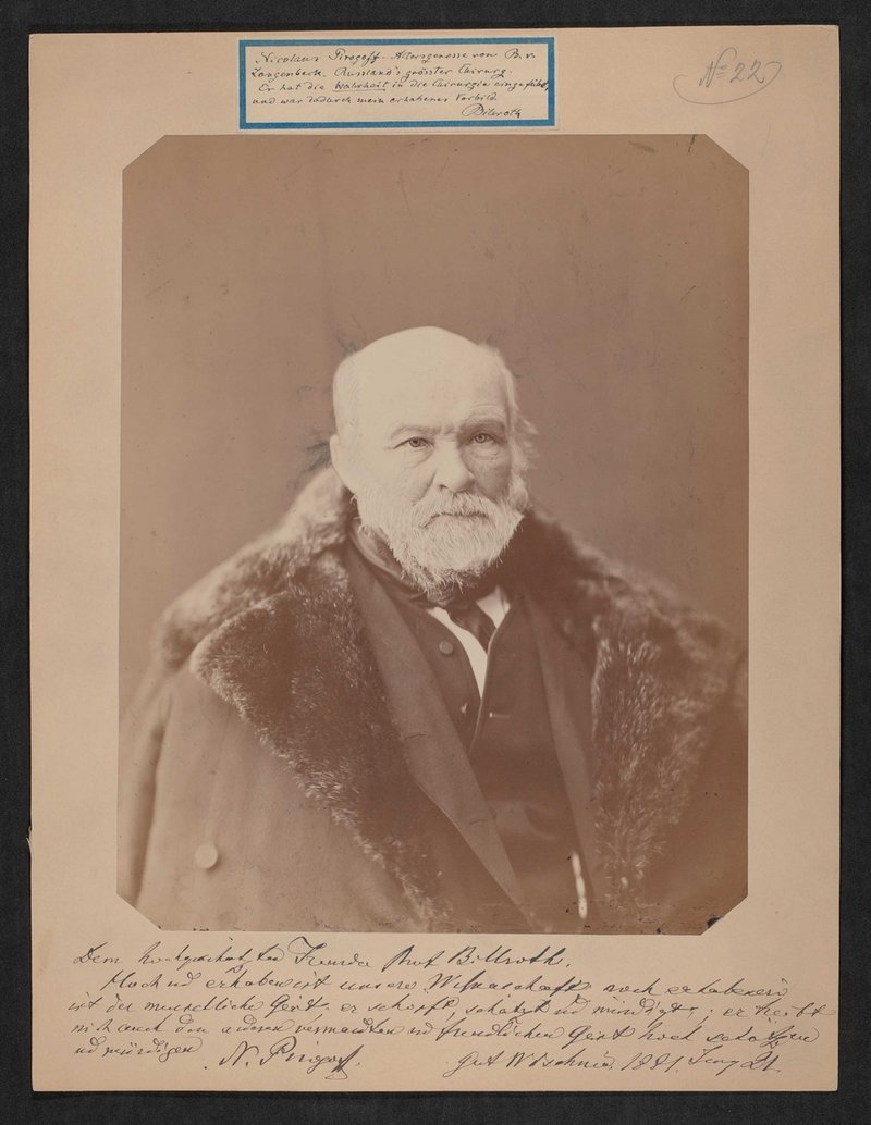 Zugehörig zu MUW-AS-4605, Brief "Nicolaus Pirogoff. Der berühmteste Chirurg Russland's" von Theodor Billroth. Leihgaben der Gesellschaft der Ärzte Wien.