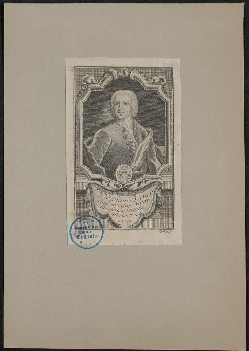 Der Kupferstich wurde von Johann Christoph Sysang, Leipzig, angefertigt. Vorderseitig mit einem Stempel des Instituts für Geschichte der Medizin, Wien, versehen.