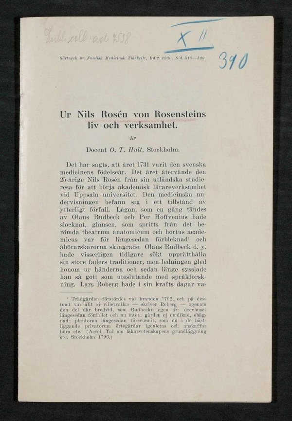 Bild und Beitrag sind der schwedischsprachigen Fachzeitschrift Särtryck ur Nordisk Medicinsk Tidskrift, Bd. 2, 1930, S. 513-520, entnommen worden. Die Bildvorlage scheint sich zur Zeit der Entstehung im Besitz von Ann Margret Holmgren befunden zu haben.