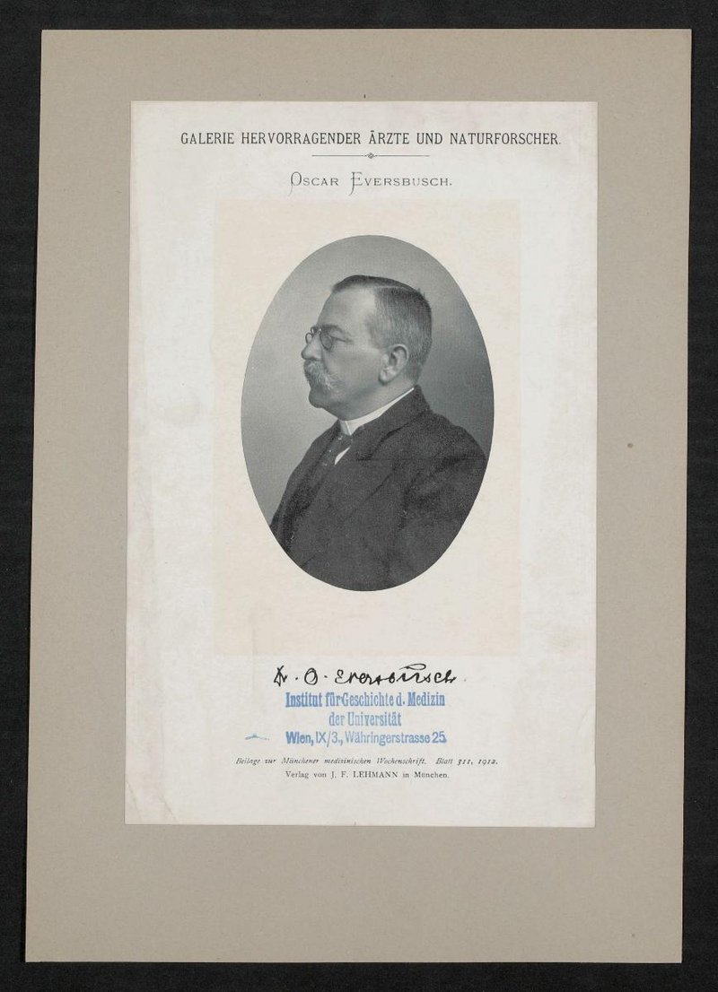 Auszug aus: Galerie hervorragender Ärzte und Naturforscher, in: Beilage zur Münchener medizinischen Wochenschrift, 1912, Bl. 311. Vorderseitig mit einem Stempel des Institutes für Geschichte der Medizin, Wien, versehen.