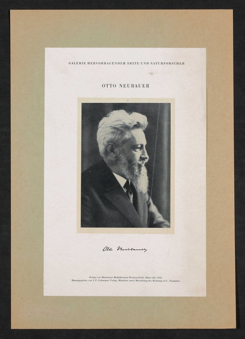 Auszug aus: Galerie hervorragender Ärzte und Naturforscher, in: Beilage zur Münchener medizinischen Wochenschrift, 1958, Bl. 638.