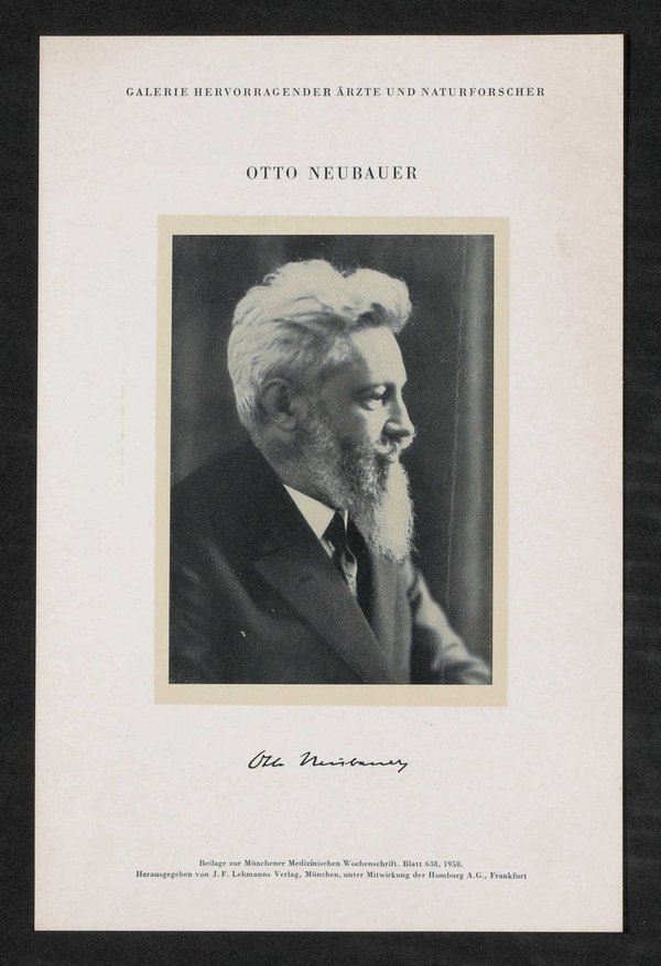 Auszug aus: Galerie hervorragender Ärzte und Naturforscher, in: Beilage zur Münchener medizinischen Wochenschrift, 1958, Bl. 638.