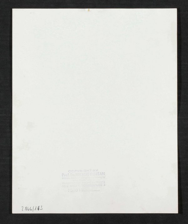 Die Fotografie ist von Helmut Kortan, Prof. Dr., Wien, angefertigt worden. Vorlage war ein Kupferstich von Luigi Rados, der auf Grundlage einer Malerei von Roberto Focosi angefertigt worden ist. Neg I 60/4, 5 Neg II 284 Neg (9x12) 14, 15 Neg (9x12) 1281