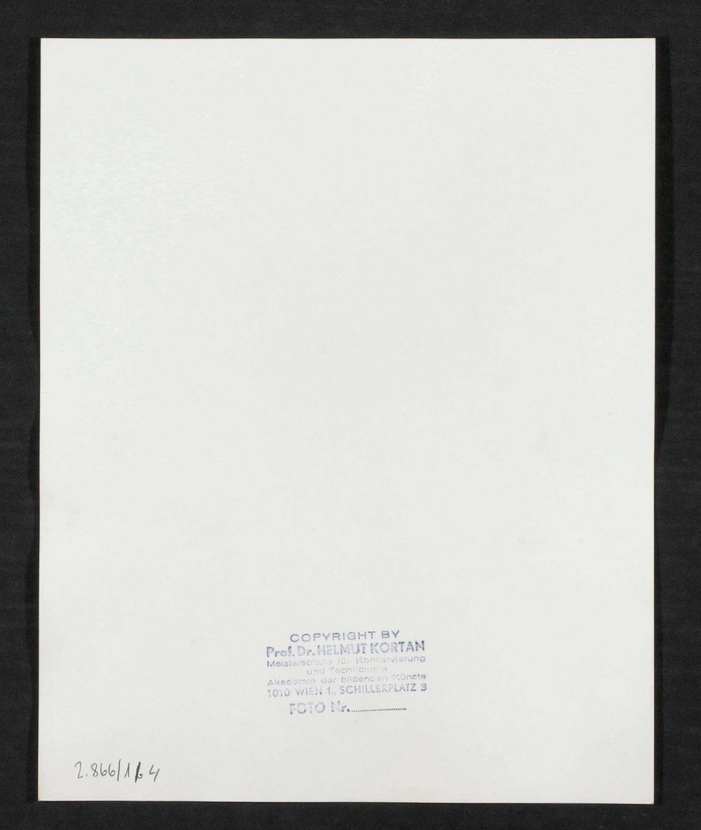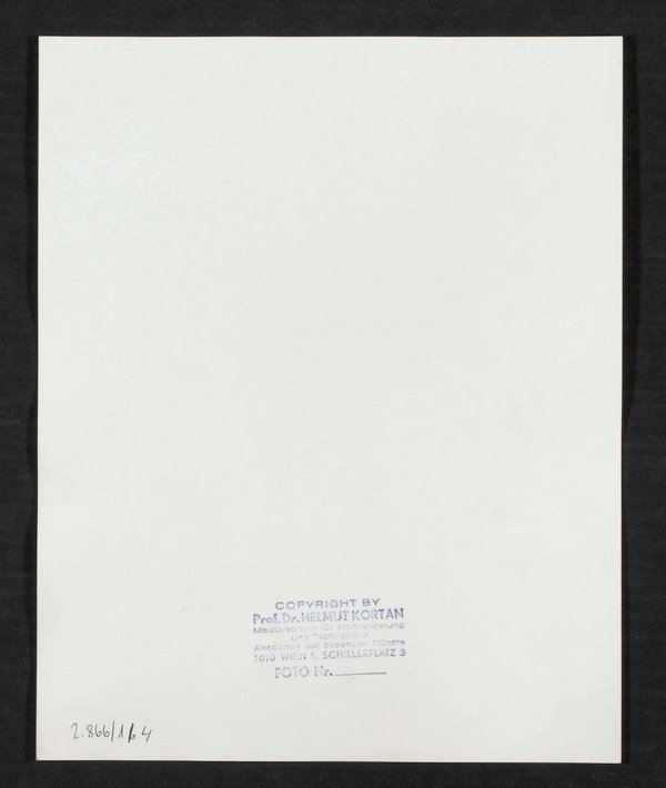 Die Fotografie ist von Helmut Kortan, Prof. Dr., Wien, angefertigt worden. Vorlage war ein Kupferstich von Luigi Rados, der auf Grundlage einer Malerei von Roberto Focosi angefertigt worden ist. Neg I 60/4, 5 Neg II 284 Neg (9x12) 14, 15 Neg (9x12) 1281
