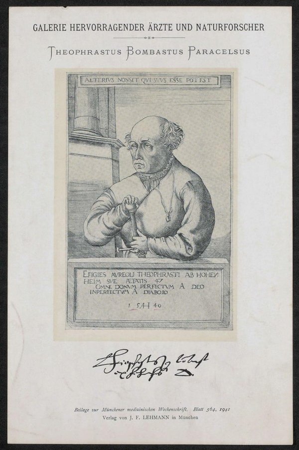 Auszug aus: Galerie hervorragender Ärzte und Naturforscher, in: Beilage zur Münchener medizinischen Wochenschrift, 1941, Bl. 564. Der Kupferstich stammt von Augustin Hirschvogel. Neg. (9x12) 338
