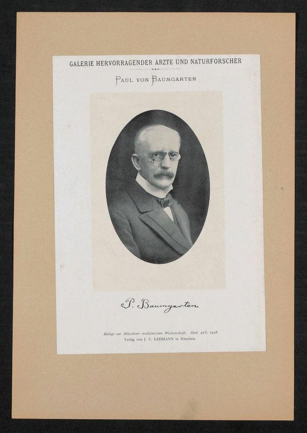 Auszug aus: Galerie hervorragender Ärzte und Naturforscher, in: Beilage zur Münchener medizinischen Wochenschrift, 1928, Bl. 418. Die Abbildung wurde von Julius Friedrich Lehmann, München, verlegt.