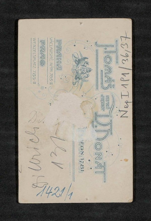 Die Fotografie stammt aus dem Atelier von Jan Tomáš, jetzt Vaclav Donát, Prag. Neg I 191/36, 37