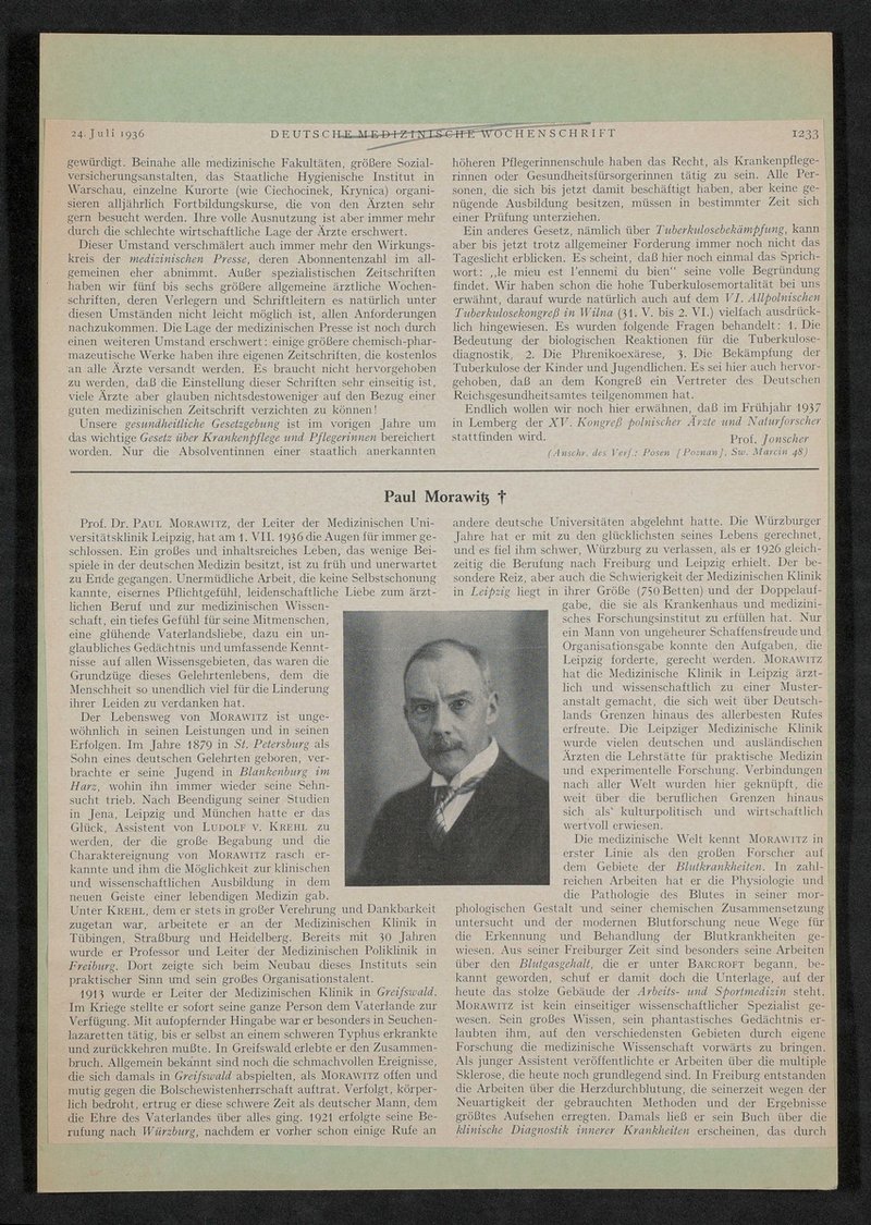 Auszug aus: Deutsch Medizinische Wochenschrift, Nr. 30, 1936.