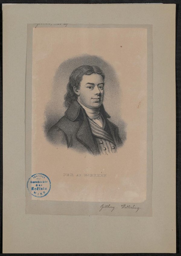 Die Lithografie wurde von Alexander Clemens Wetterling auf Grundlage eines Gemäldes von Jacob Axel Gillberg angefertigt. Vorderseitig mit einem Stempel des Instituts für Geschichte der Medizin, Wien, versehen.