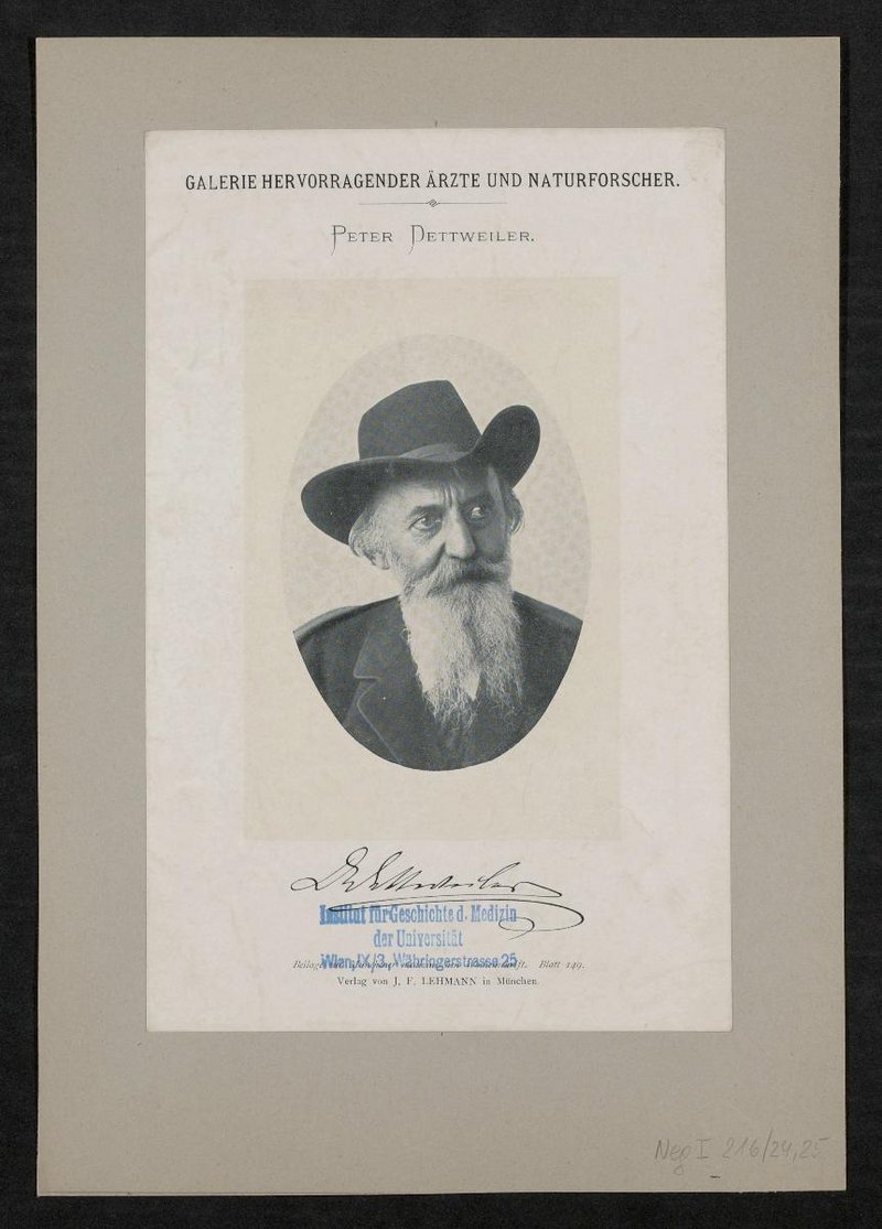 Auszug aus: Galerie hervorragender Ärzte und Naturforscher, in: Beilage zur Münchener medizinischen Wochenschrift, Bl. 149. Vorderseitig mit einem Stempel des Instituts für Geschichte der Medizin, Wien, versehen. Neg I 216/24, 25