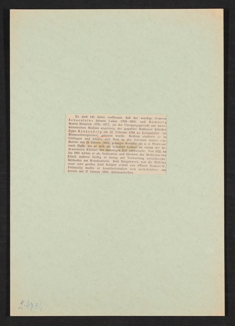 Das Bild ist Spemanns Historischem Medicinal-Kalender entnommen worden. Die Vorlage stammte aus der Sammlung Ernst Roediger, Frankfurt am Main. Neg III 125/3