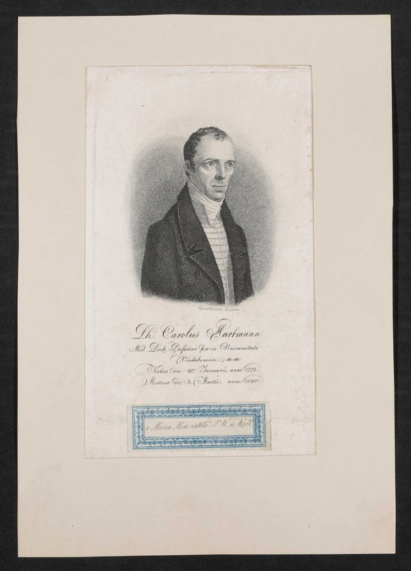 Der Kupferstich ist von Christiane Grüner angefertigt worden. Rückseitig mit einem Stempel der Gesellschaft der Ärzte, Wien, versehen. Neg III 104/6