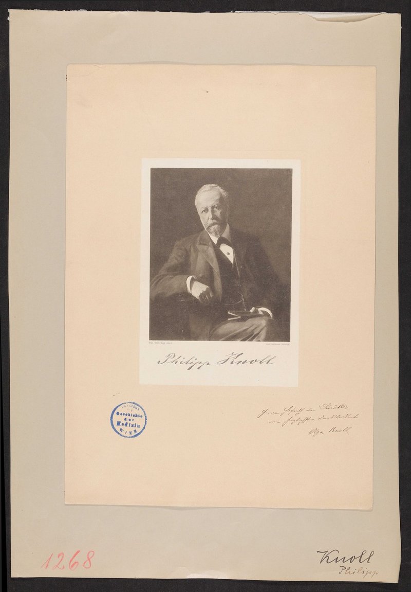 Die Lithografie ist von Karl Bellmann auf Grundlage eines Gemäldes von Olga Knoll-Kugy angefertigt worden. Vorderseitig mit einem Stempel des Instituts für Geschichte der Medizin, Wien, versehen.
