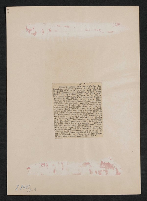 Auf der Vorderseite befindet sich ein Stempel des Instituts für Geschichte der Medizin, Wien.