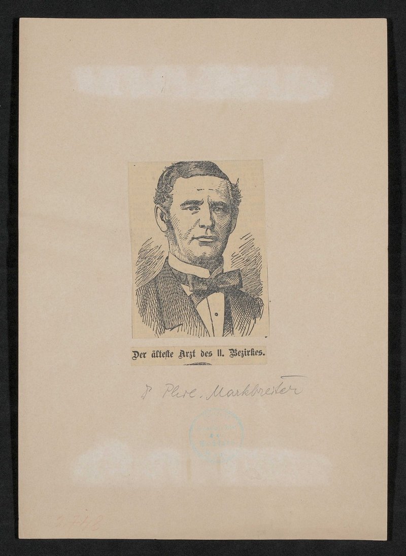 Auf der Vorderseite befindet sich ein Stempel des Instituts für Geschichte der Medizin, Wien.