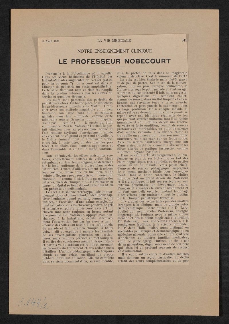 Ausschnitt aus: La Vie Medicale. Das Bild wurde von Henri Manuel angefertigt.