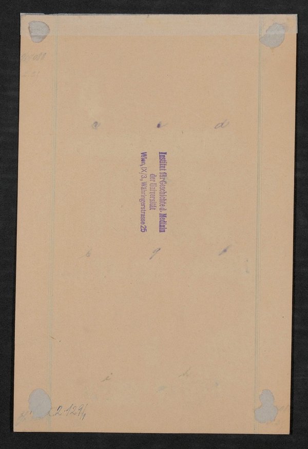 Vorder- und rückseitig mit Stempeln des Instituts für Geschichte der Medizin, Wien, versehen.