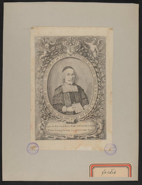 Der Kupferstich wurde von Raffanus, Verona, angefertigt. Vorderseitig mit zwei Stempeln des Institutes für Geschichte der Medizin, Wien, versehen.