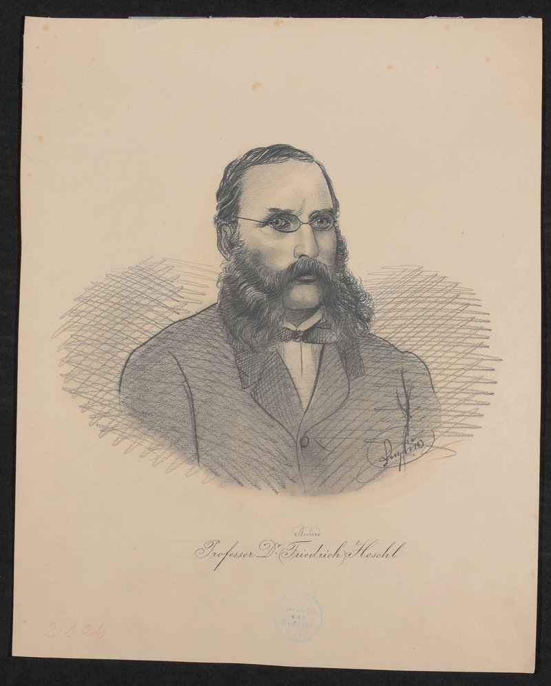 Das Bild ist vermutlich von Sergius Pauser gezeichnet worden. Vorderseitig mit einem Stempel des Instituts für Geschichte der Medizin, Wien, versehen.
