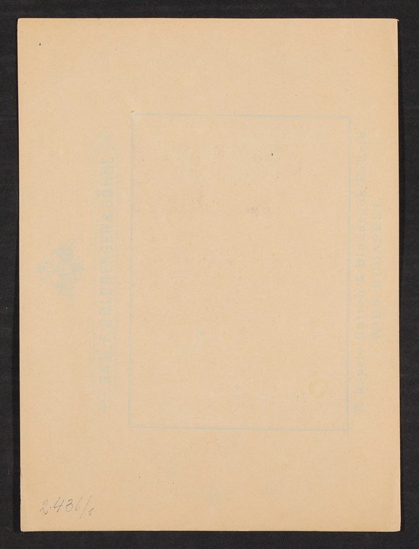 Vorderseitig mit einem Stempel des Instituts für Geschichte der Medizin, Wien, versehen. Auf der Kartonrückseite schimmert der Name der Firma von Samuel Goldberger und Söhne, Druckerei, Wien und Budapest, durch.