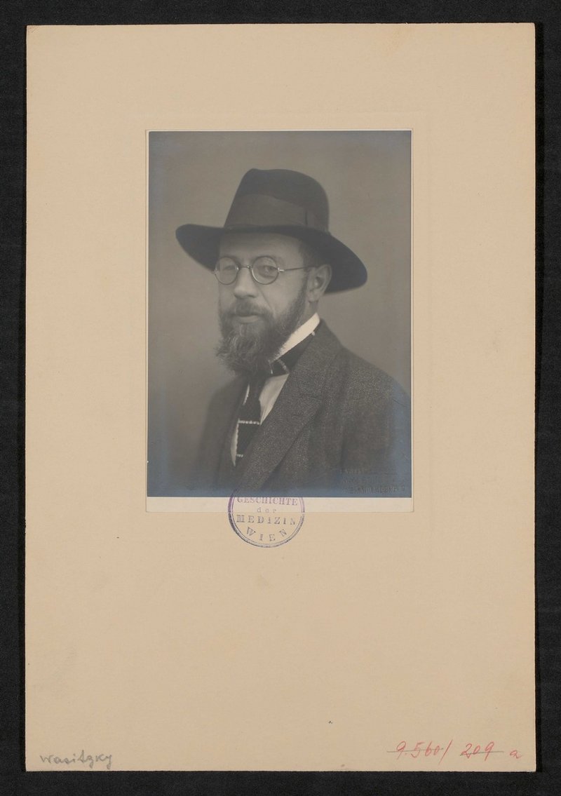 Es handelt sich um eine Fotografie von Max Schneider, Wien. Vorder- und rückseitig mit jeweils einem Stempel des Institutes für Geschichte der Medizin, Wien, versehen.