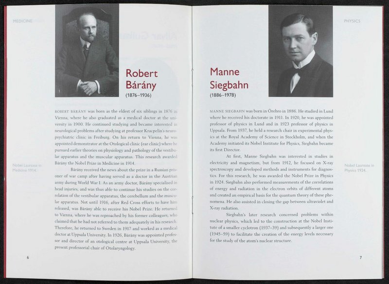 Porträts und Biographien entstammen einer von der Universität Uppsala herausgegebenen Broschüre zum Thema Nobelpreis.
