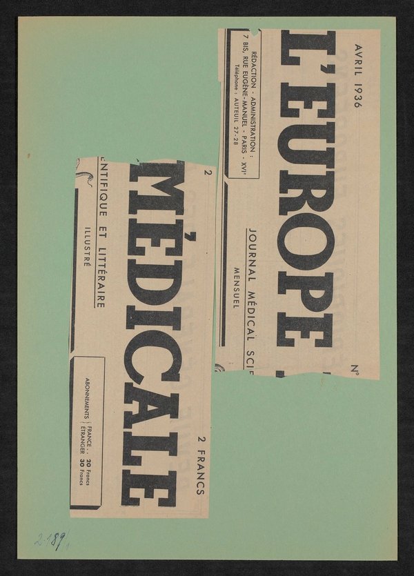 L'Europe Médicale. Journal Médical Scientifique et Littéraire, Paris