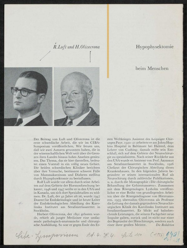 Der Beitrag ist dem Ciba-Symposium, Bd. 4, Heft 4, 1956, S. 110, entnommen.