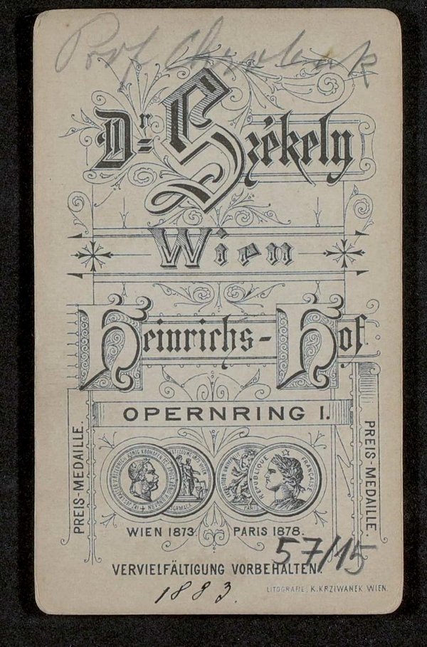 Die Fotografie wurde von Josef Szekely, Wien, die Lithografie von Karl Krziwanek, Wien, angefertigt. Neg. III 55/3