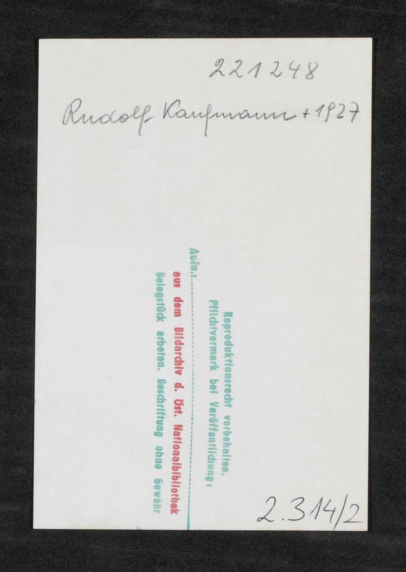 Die Vorlage stammte aus der Zeit um 1925. Mit rückseitigem Herkunftsstempel des Bildarchivs der Österreichischen Nationalbibliothek, Wien.