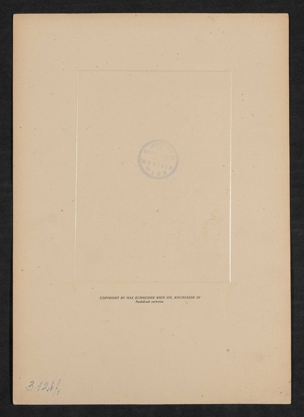 Die Fotografie stammt aus dem Fotoatelier Max Schneider, Wien. Vorderseitig und rückseitig mit jeweils einem Stempel des Institutes für Geschichte der Medizin, Wien, versehen.