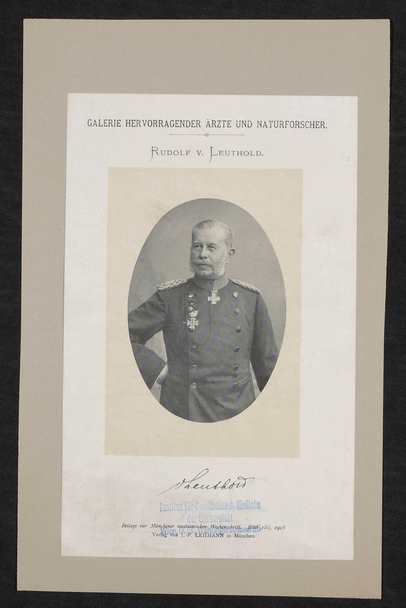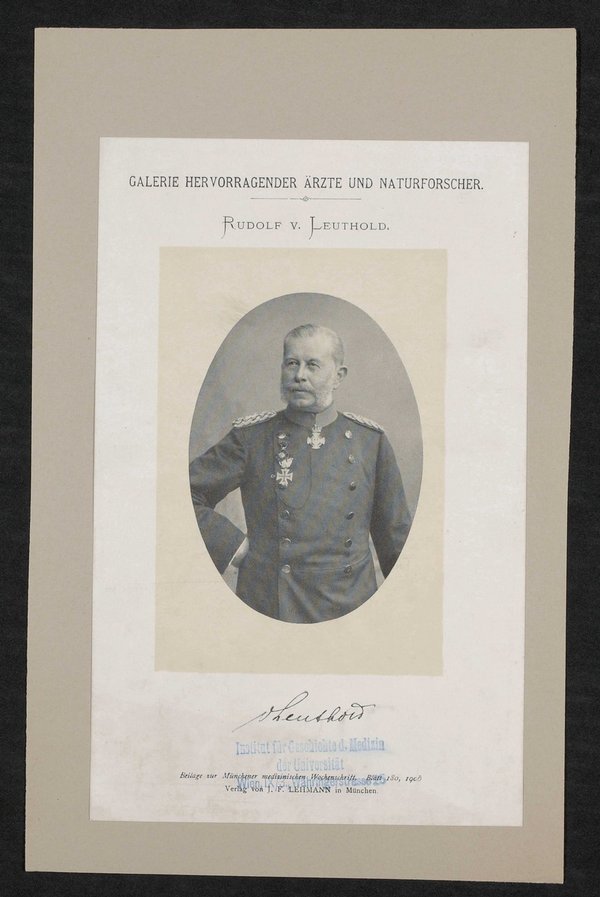 Auszug aus: Galerie hervorragender Ärzte und Naturforscher, in: Beilage zur Münchener medizinischen Wochenschrift, 1906, Bl. 180. Vorderseitig mit einem Stempel des Instituts für Geschichte der Medizin, Wien, versehen.
