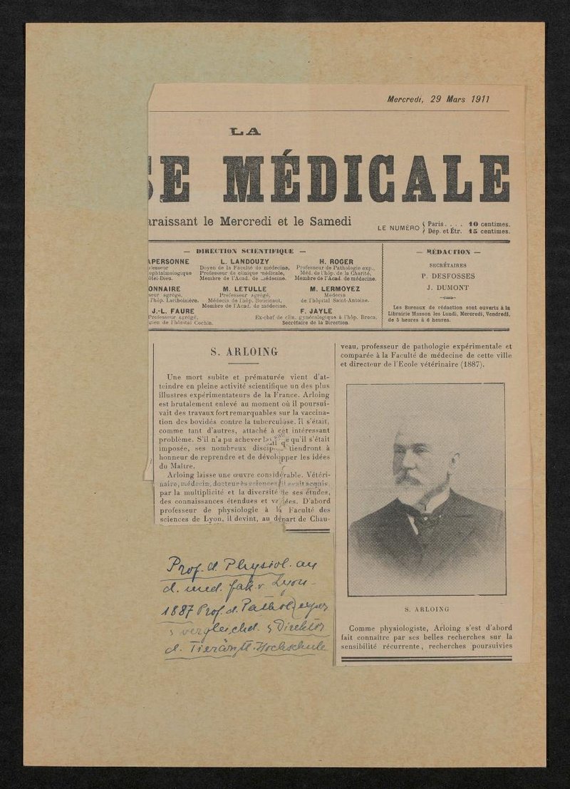 Bild und Bericht sind der französischsprachigen Zeitung La Presse Médicale, 29. März 1911, entnommen worden.