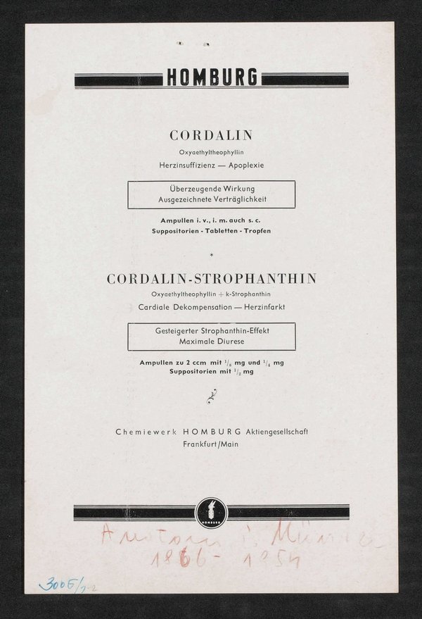 Auszug aus: Galerie hervorragender Ärzte und Naturforscher, in: Beilage zur Münchener medizinischen Wochenschrift, 1955, Bl. 605.