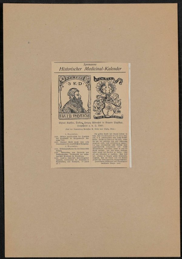 Reproduktion eines Holzschnittes, der vermutlich um 1560 entstanden ist. Abgedruckt in Spemanns Historischer Medicinal-Kalender.