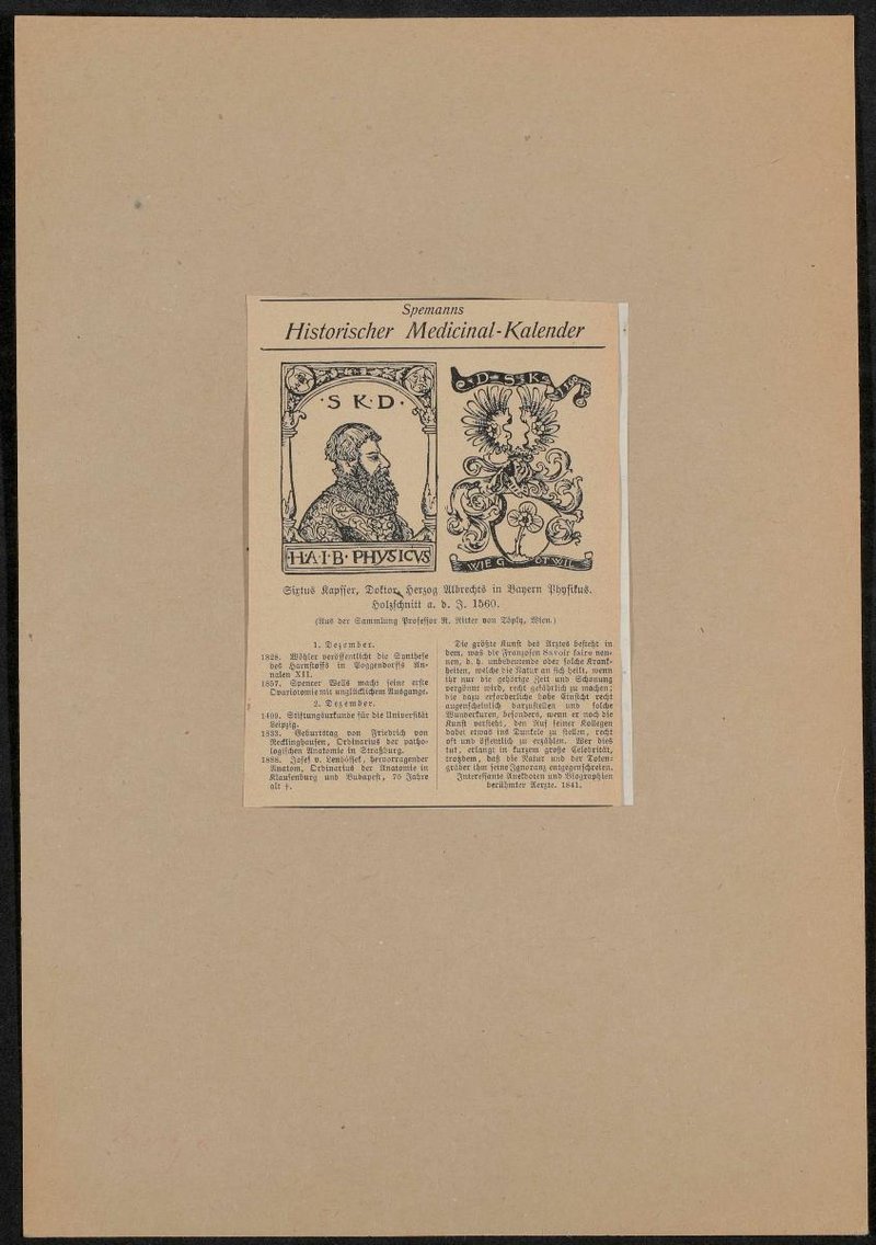 Reproduktion eines Holzschnittes, der vermutlich um 1560 entstanden ist. Abgedruckt in Spemanns Historischer Medicinal-Kalender.